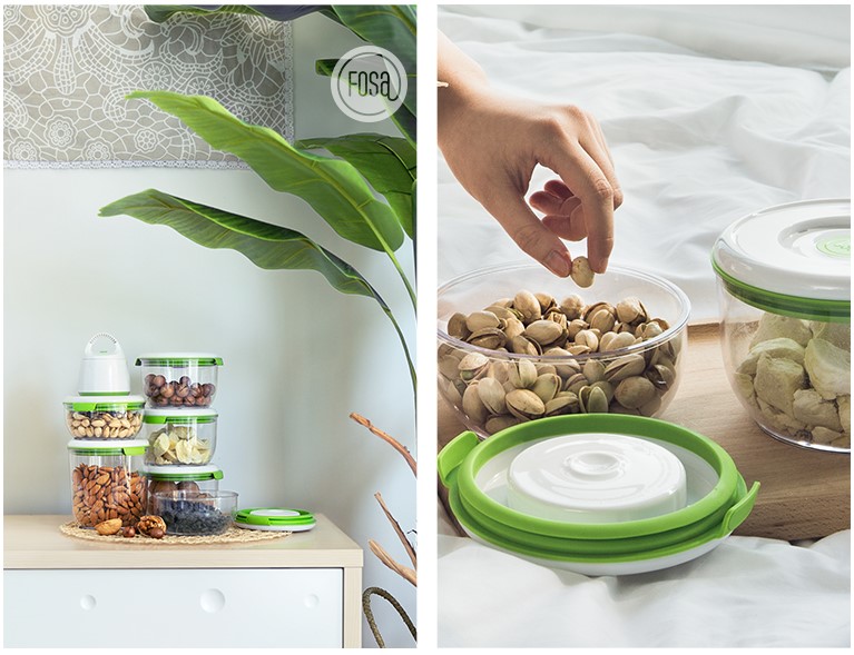 Fosa offers a versatile collection of food storage solutions designed for every need. From round and rectangular containers to bread boxes, glass carafes for juices, microwavable options, and vacuum bags — our wide range has you covered. Every piece is fully compatible with the Fosa Vacuum Pump, helping you keep food fresher for longer with effortless vacuum sealing. Freshness, flexibility, and quality — all in one family.
